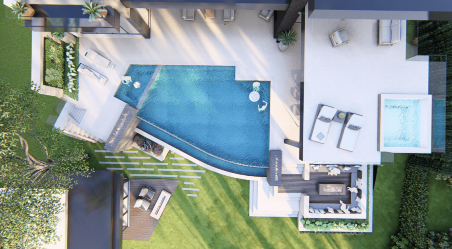 A rendering of the luxurious backyard of TNAH.