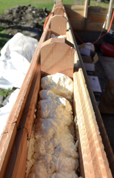 Here’s a course of Lincoln Block being filled with spray foam from a portable kit.