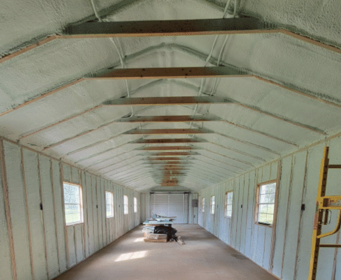 For the second barn, the crew applied Genyk ELITE HFO closed-cell foam to the roof deck and gable walls.