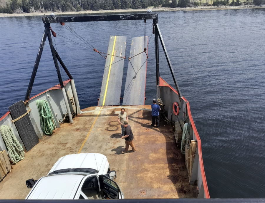 Though the job took place in May 2025, planning began months earlier in November 2024. Exeter is a good distance from 700 Acre Island, and the journey required multiple stages: an hour-long truck ride from Circle D’s base in Exeter to a port in Rockland, where they would load all the equipment onto a barge. From there they’d take a 20-minute barge trip across the water. At the end of the day, they’d head back to the mainland via a small boat, which would land in Lincolnville, then do it all again the following morning until the job was finished.